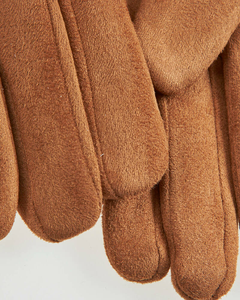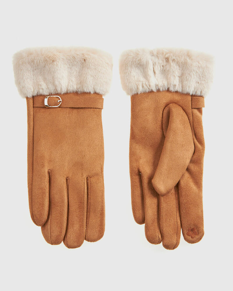 Ανανεώστε το χειμερινό σας look με αυτά τα γυναικεία γάντια της Verde που συνδυάζουν κομψότητα και πρακτικότητα. Η συνθετική (Faux)  γούνα στο τελείωμα σε συνδυασμό με τη διακριτική αγκράφα προσδίδουν ένα chic αποτέλεσμα, ιδανικό για κάθε στιγμή της ημέρας. Η suede υφή εξωτερικά προσφέρει πολυτέλεια, ενώ η εσωτερική επένδυση fleece χαρίζει μοναδική ζεστασιά.