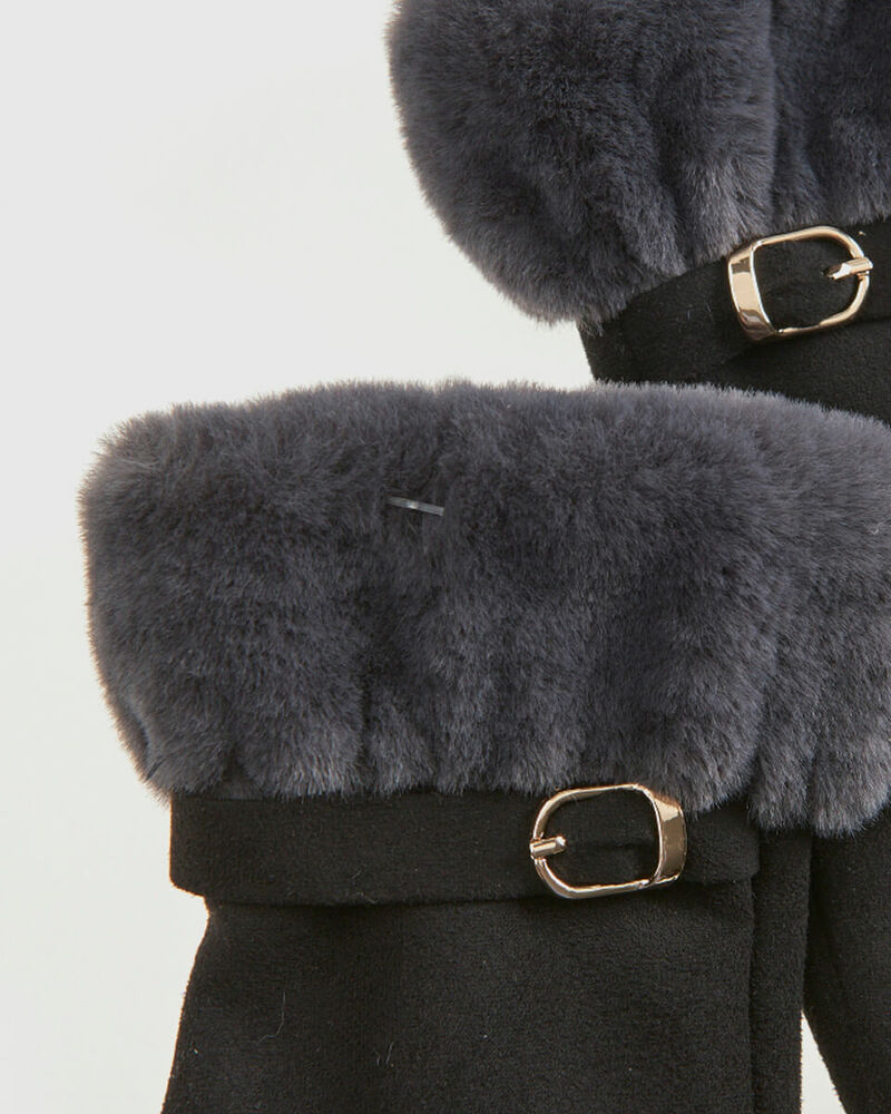 • Λεπτομέρεια: συνθετική (Faux) γούνα στο τελείωμα & διακοσμητική αγκράφα