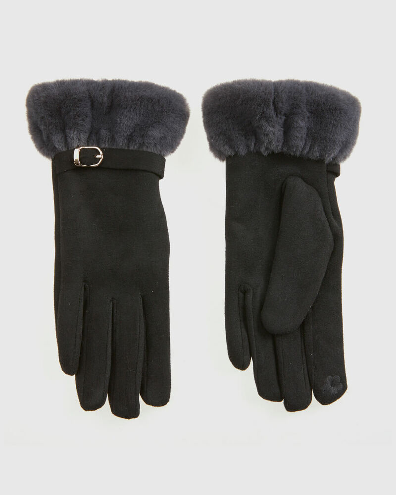 Ανανεώστε το χειμερινό σας look με αυτά τα γυναικεία γάντια της Verde που συνδυάζουν κομψότητα και πρακτικότητα. Η συνθετική (Faux)  γούνα στο τελείωμα σε συνδυασμό με τη διακριτική αγκράφα προσδίδουν ένα chic αποτέλεσμα, ιδανικό για κάθε στιγμή της ημέρας. Η suede υφή εξωτερικά προσφέρει πολυτέλεια, ενώ η εσωτερική επένδυση fleece χαρίζει μοναδική ζεστασιά.