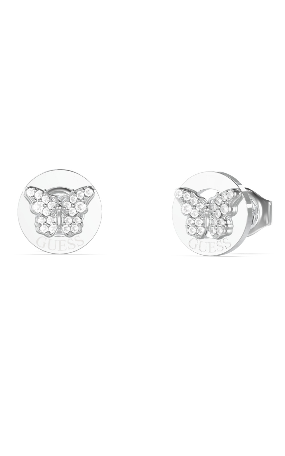 Γυναικεία Σκουλαρίκια Guess STEEL BORBOLETA JUBE06136JWRHT/U, ασημένια με σχέδιο πεταλούδες με πέτρες(1cm).