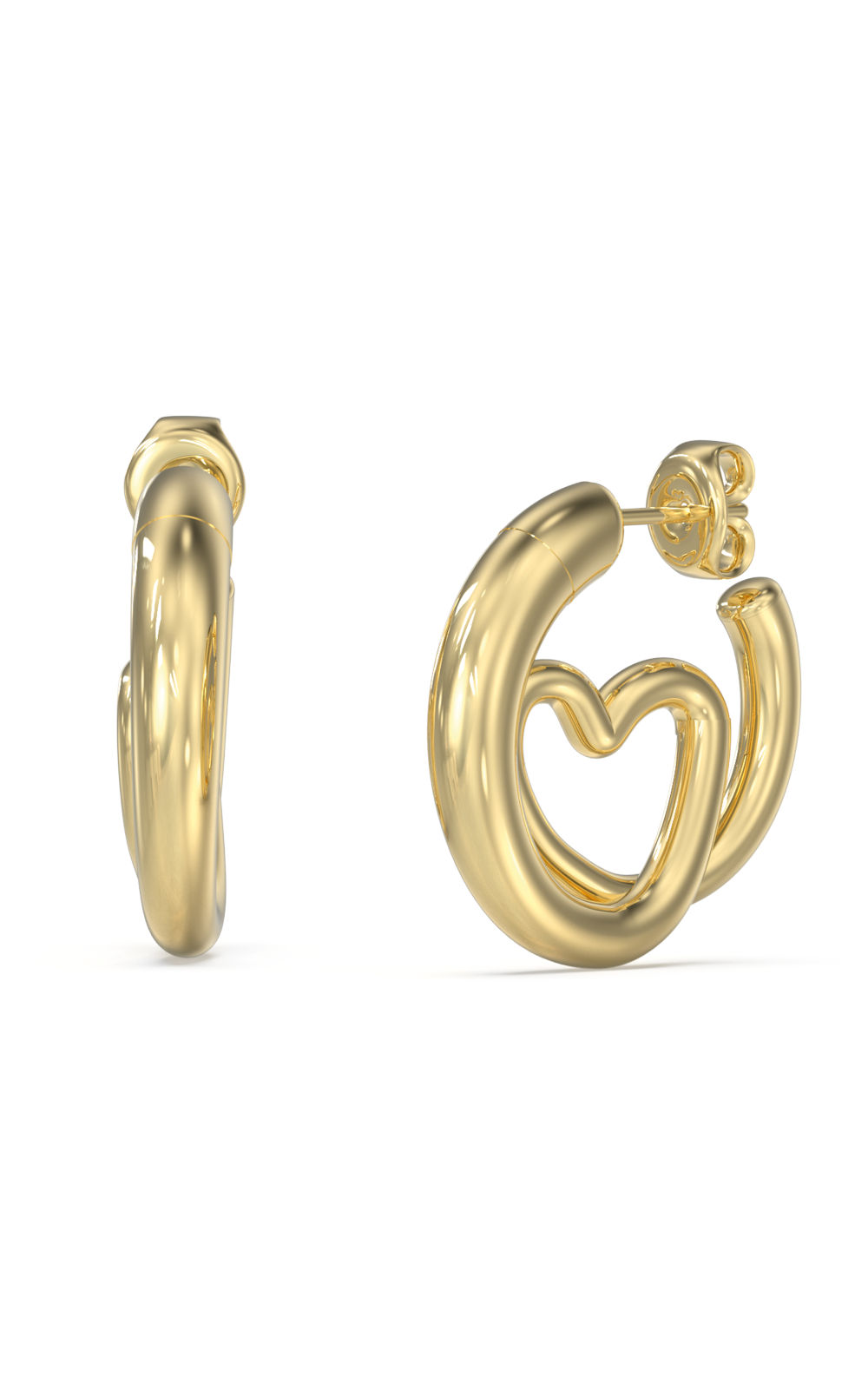 Γυναικεία Σκουλαρίκια Guess STEEL ICONIQUE JUBE05529JWYGT/U, χρυσά σε σχέδιο καρδιές(1,4cm).