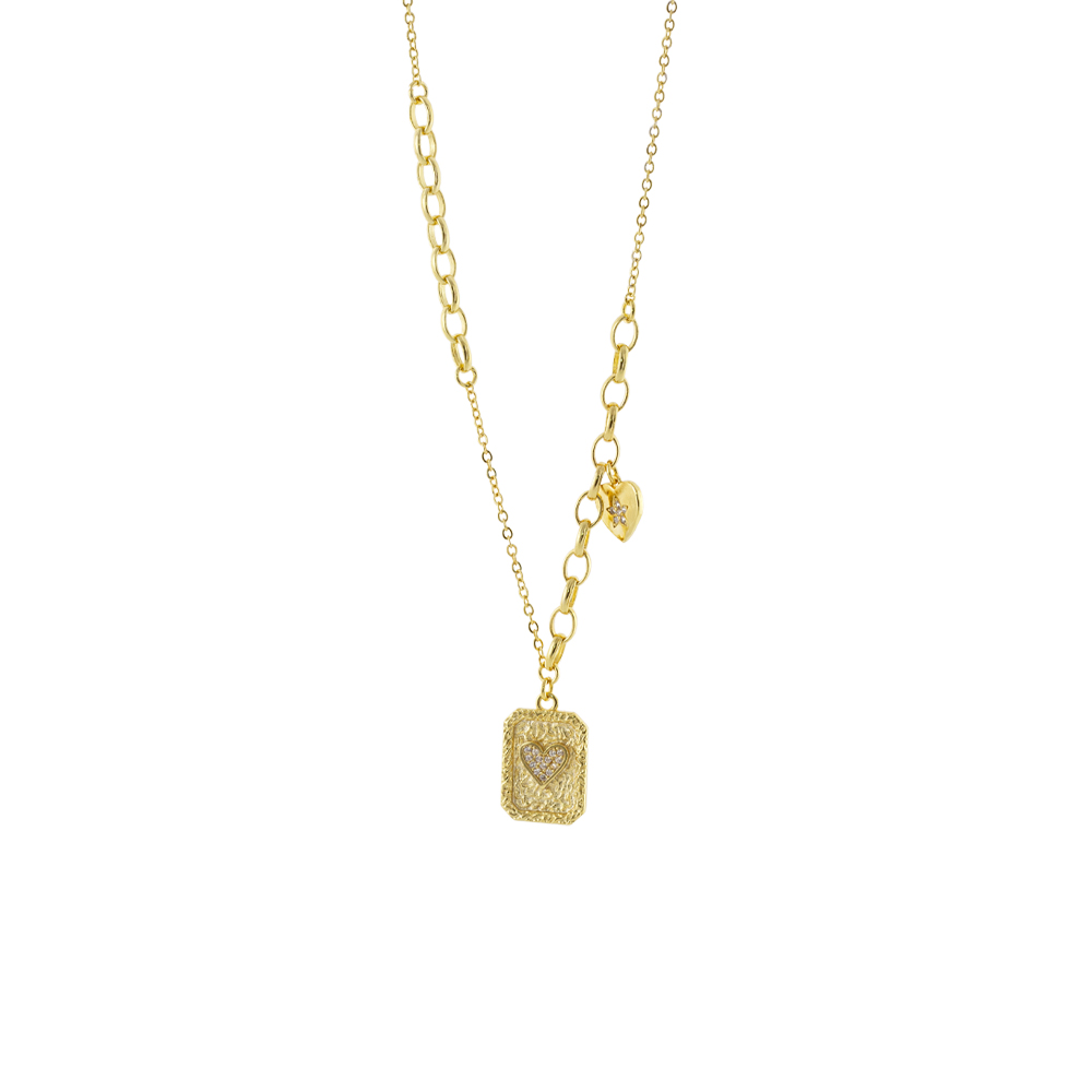 Κολιέ Charming μεταλλικό επίχρυσο με στοιχεία και λευκά ζιργκόν