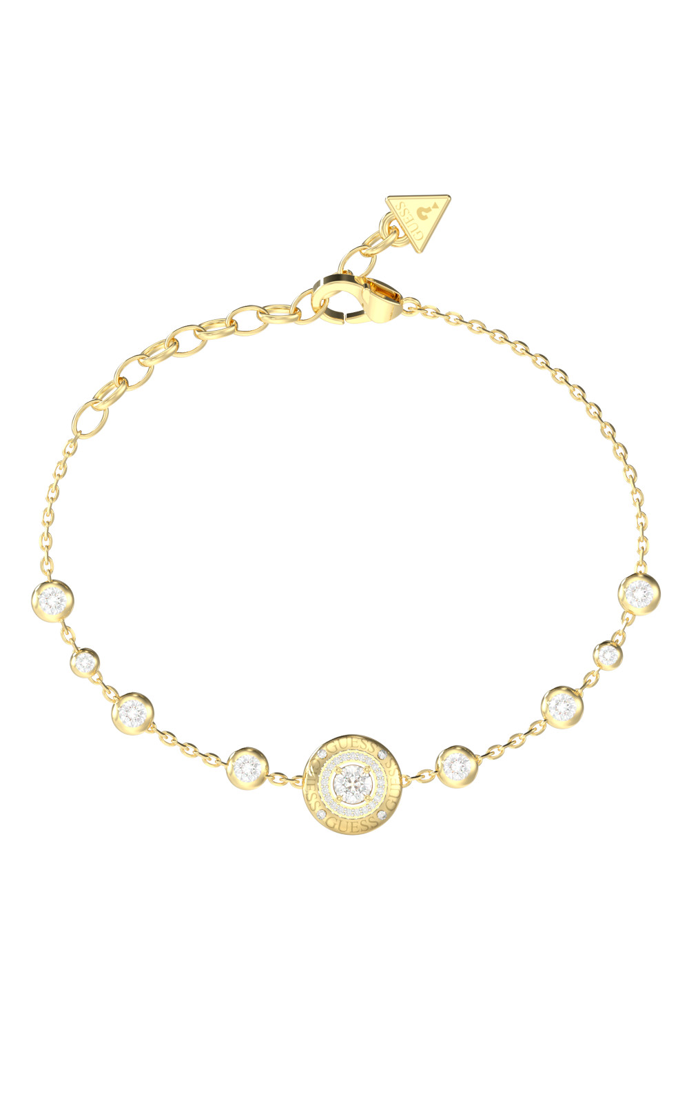 Γυναικείο Βραχιόλι Guess STEEL SPARKS JUBB06274JWYGL χρυσού χρώματος με σχέδιο με πέτρες και λογότυπο(21cm).