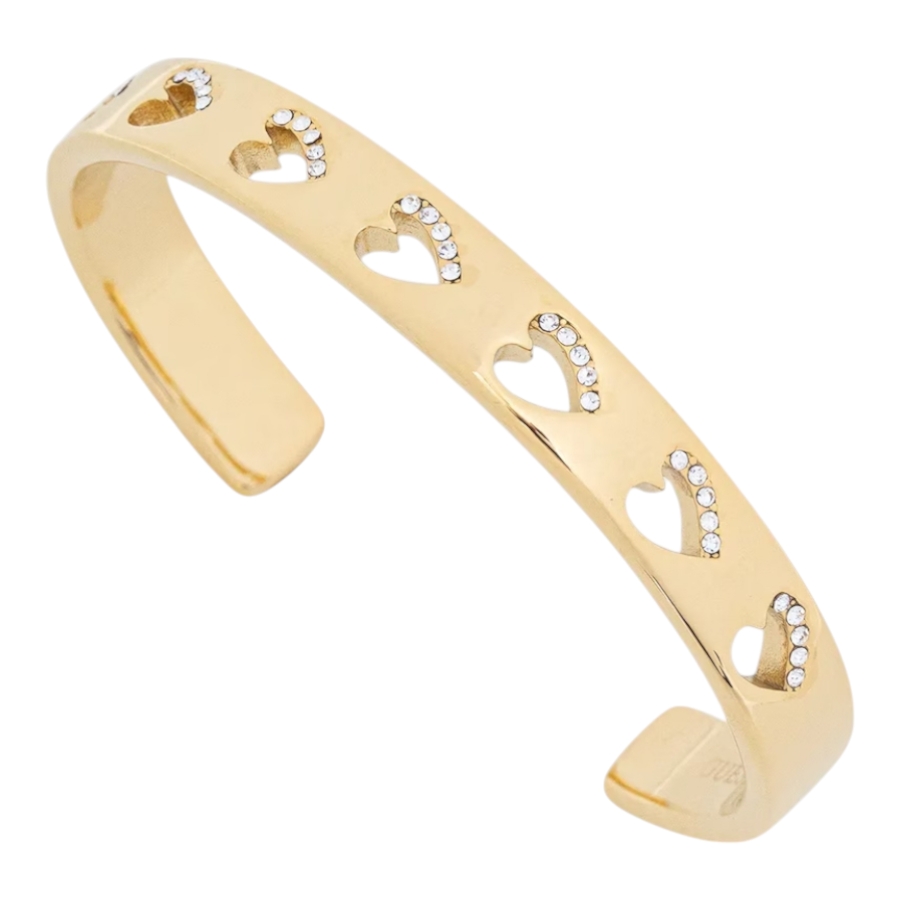 Γυναικείο Βραχιόλι-χειροπέδα Guess STEEL BY YOUR SIDE JUBB06084JWYGL χρυσού χρώματος με καρδιές και πέτρες(5x6cm)