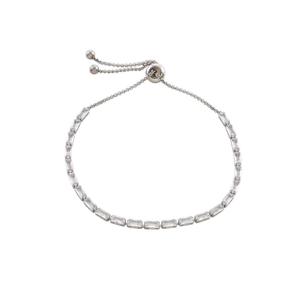 Βραχιόλι Festive ατσάλινο ριβιέρα με ορθογώνια λευκά ζιργκόν
