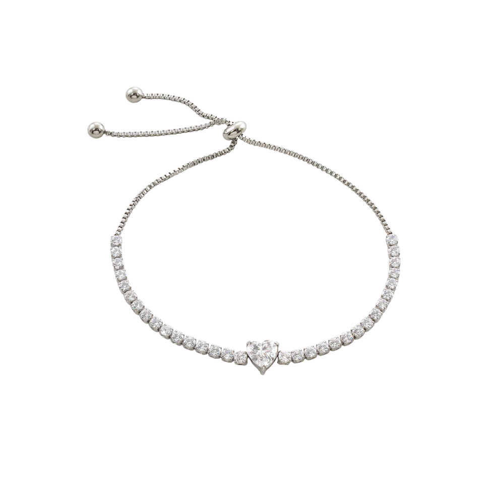 Βραχιόλι με πολλά λαμπερά λευκά cz και μια καρδιά στο κέντρο, από τη νέα εντυπωσιακή συλλογή Festive της Loisir.