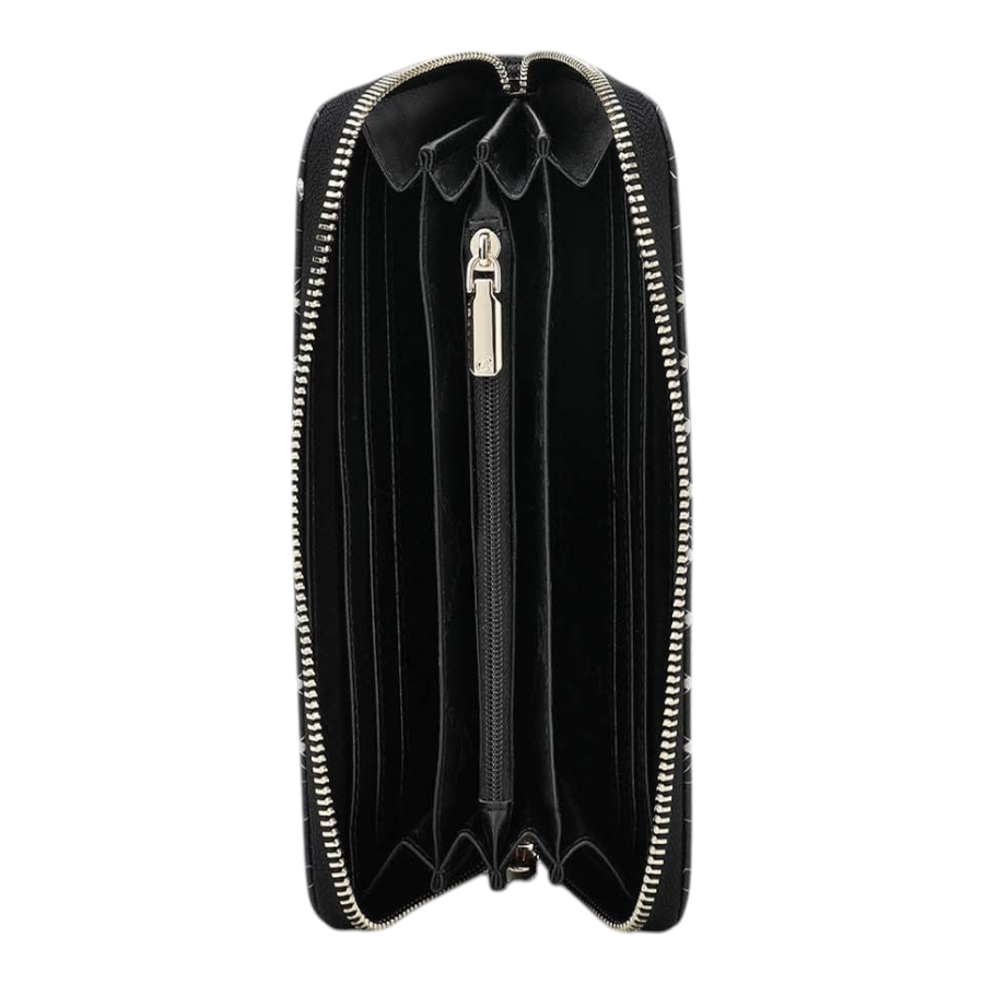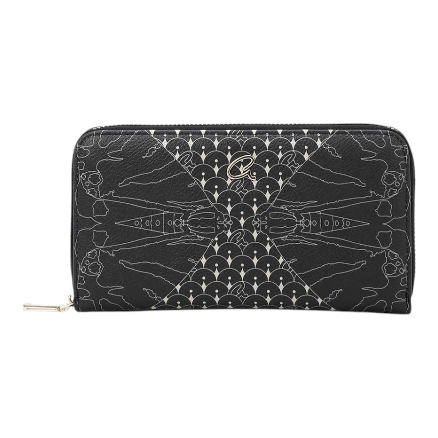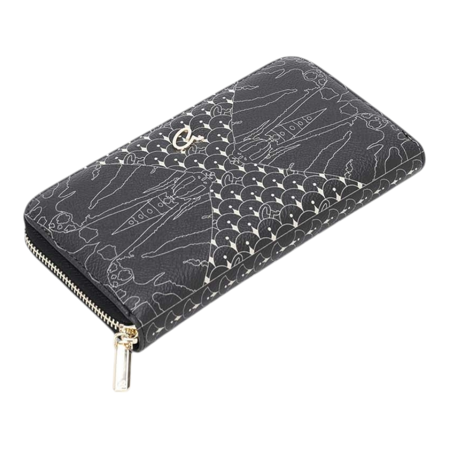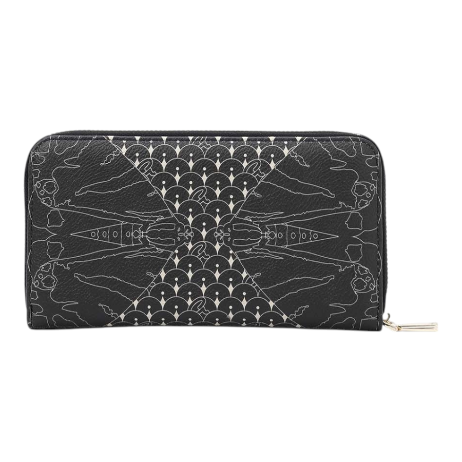 Γυναικείο πορτοφόλι με τύπωμα πεταλούδας, από τεχνόδερμα. Διαθέτει θήκη φερμουάρ για νομίσματα, θήκες χαρτονομισμάτων και πολλαπλές θέσεις για κάρτες. Ασφαλίζει με φερμουάρ. Ένα κλασικό πορτοφόλι, ιδανικό για κάθε τσάντα.