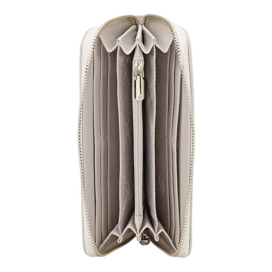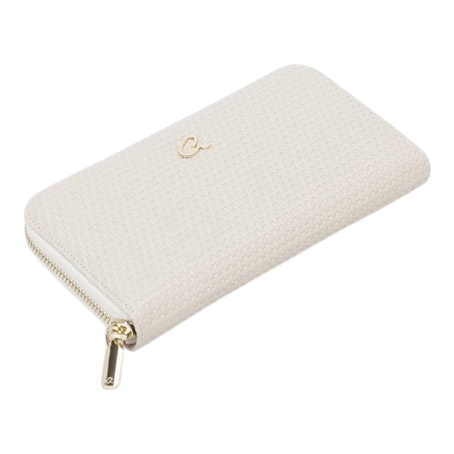 Γυναικείο πορτοφόλι, με ανάγλυφο σχέδιο κατασκευασμένο από τεχνόδερμα υψηλής ποιότητας. Διαθέτει κεντρική θήκη με φερμουάρ και θέσεις για κάρτες και χαρτονομίσματα. Κλείνει με φερμουάρ. Μπορεί να συνδυαστεί ιδανικά με την τσάντα 1023-0596