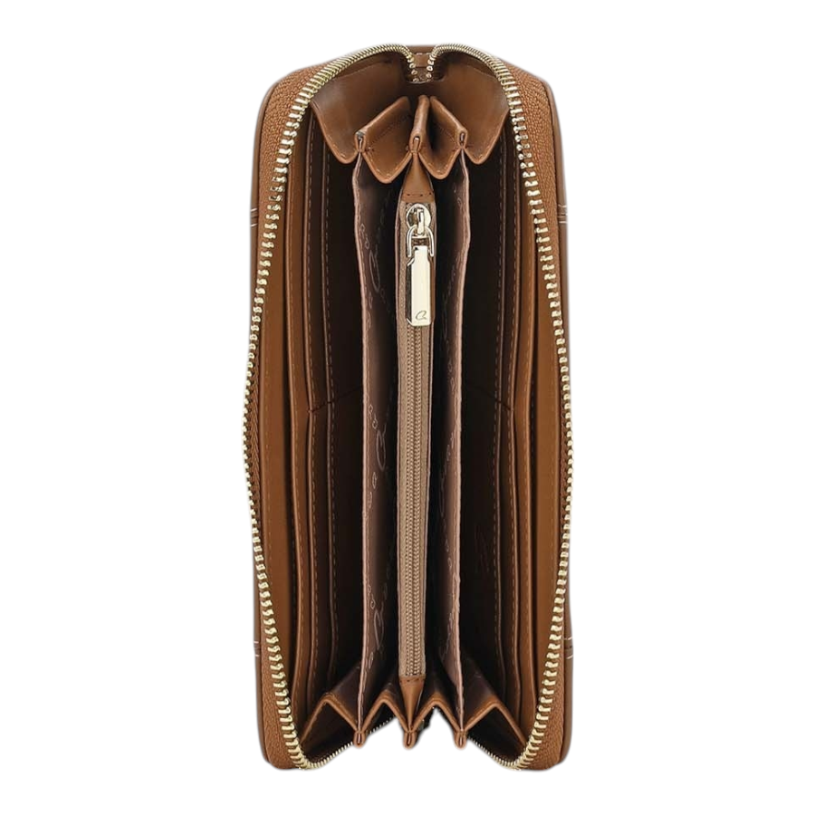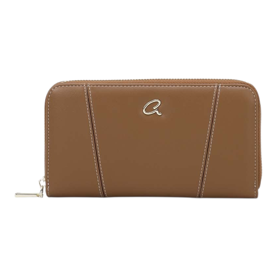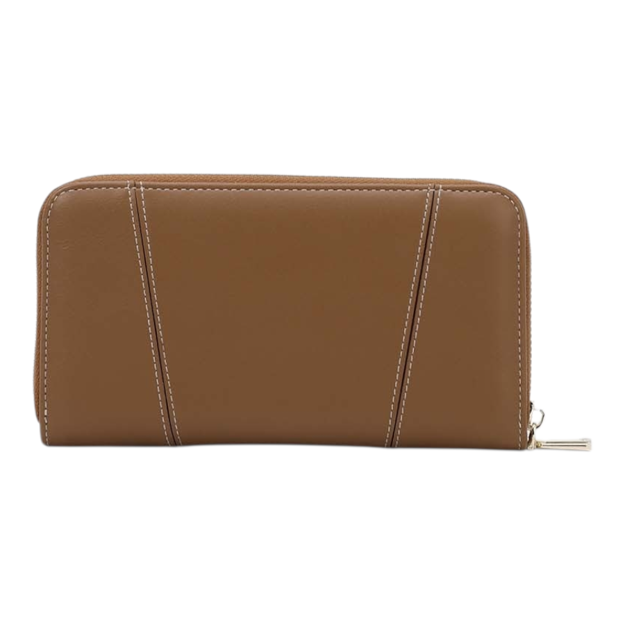 Γυναικείο πορτοφόλι με ραφές από τεχνόδερμα. Διαθέτει θήκη φερμουάρ για νομίσματα, θήκες χαρτονομισμάτων και πολλαπλές θέσεις για κάρτες. Ασφαλίζει με φερμουάρ. Ένα κλασικό πορτοφόλι, ιδανικό για κάθε τσάντα.