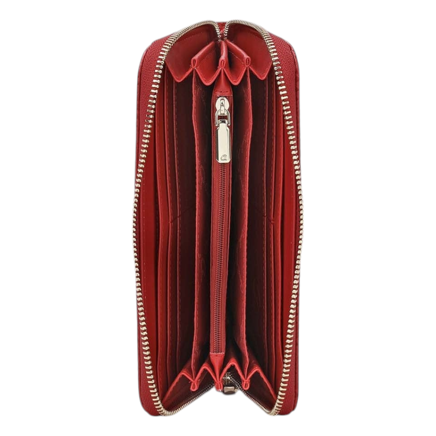 Γυναικείο πορτοφόλι, με υφή φίδι, από τεχνόδερμα υψηλής ποιότητας. Διαθέτει κεντρική θήκη με φερμουάρ και θέσεις για κάρτες και χαρτονομίσματα. Κλείνει με φερμουάρ.