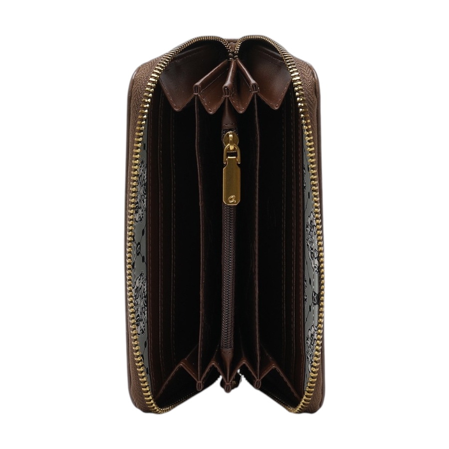 Γυναικείο πορτοφόλι Avelina με κροκό υφή. Διαθέτει κεντρική θήκη για νομίσματα και πολλαπλές θέσεις για κάρτες και χαρτονομίσματα. Κλείνει με φερμουάρ και διαθέτει διακοσμητικό τύπωμα axel εσωτερικά. Συνδυάζεται ιδανικά με τη τσάντα 1010-3464.