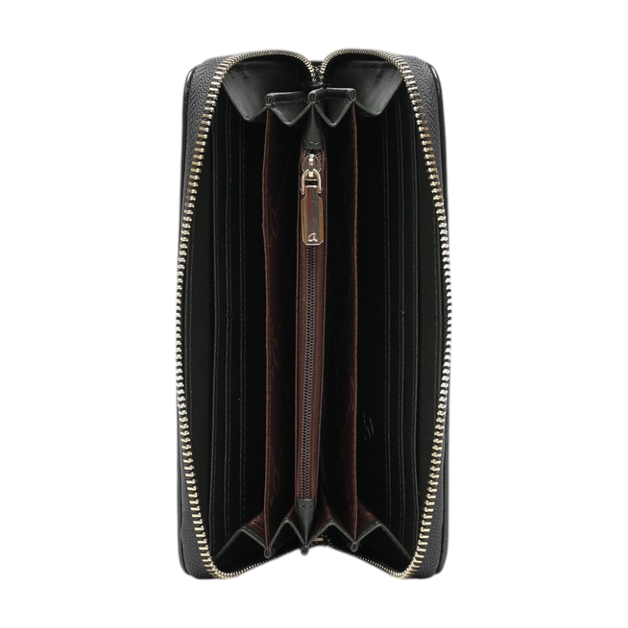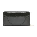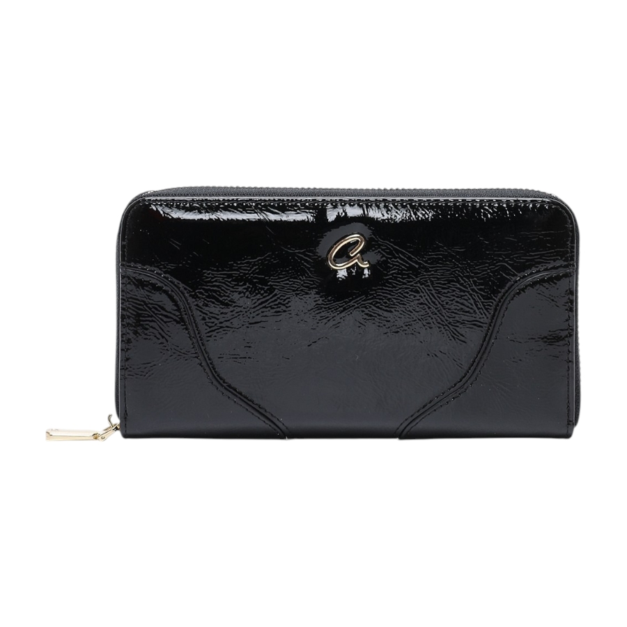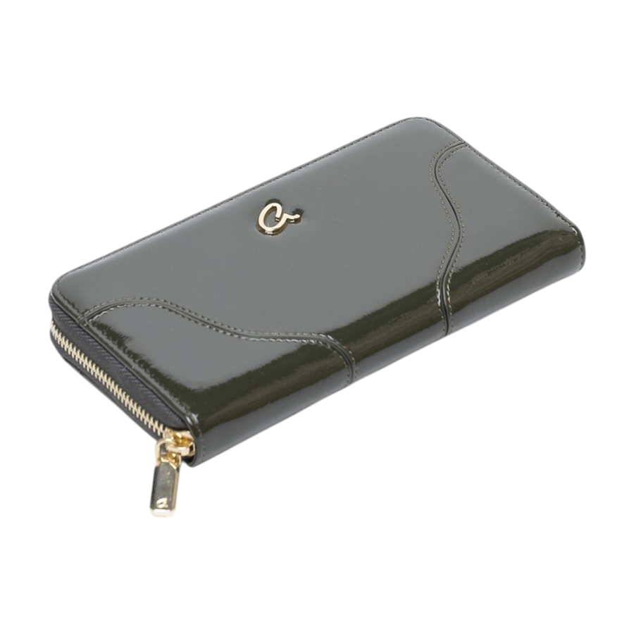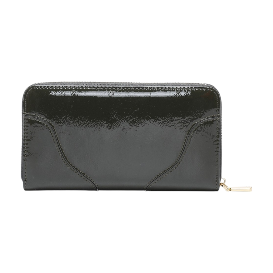 Πορτοφόλι Darienne κατασκευασμένο από τεχνόδερμα με λουστρίν όψη. Εσωτερικά περιέχει θήκη φερμουάρ για νομίσματα, πολλαπλές θέσεις για χαρτονομίσματα και κάρτες. Ασφαλίζει με φερμουάρ. Η εμφάνιση του ολοκλήρώνεται με ραφές και χρυσές μεταλλικές λεπτομέρειες στην εξωτερική του πλευρά.