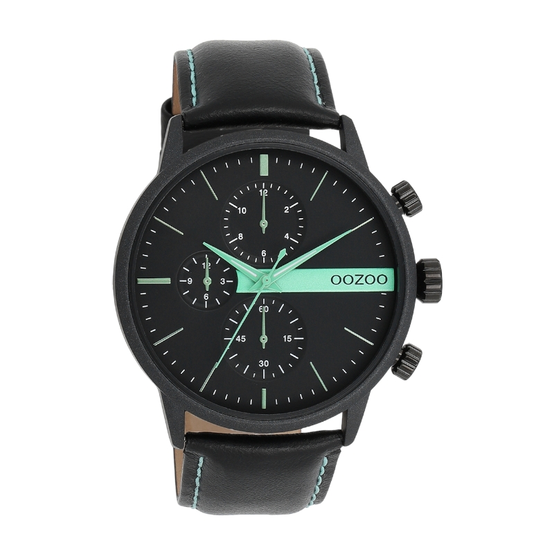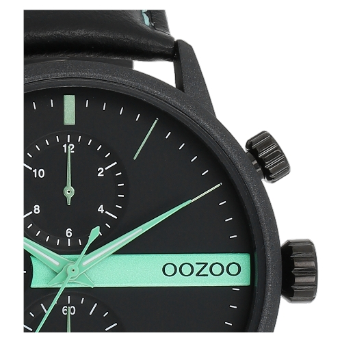 Ανδρικό ρολόι OOZOO Timepieces C11229 μαύρο μεταλλικό με μαύρο δερμάτινο λουράκι