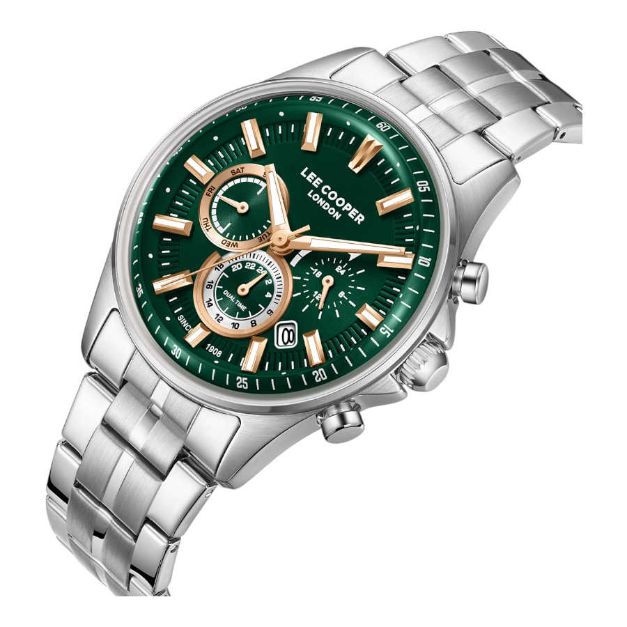 LC08213.370Κωδικός Προϊόντος LC08213.370Ετικέτα ΌχιΦύλλο ΑνδρικάΤύπος Ρολογιού Αναλογικό, Multifunction, Με ένδειξη ΗμερομηνίαςΤύπος Κίνησης ΑναλογικόΜηχανισμός QuartzΑδιάβροχο 3 ATM – 30m: Ανθεκτικά σε πιτσιλιές, σταγόνες της βροχής, ιδρώταΒιδωτή Κορώνα ΌχιΔιάμετρος Κάσας 42 mmΚάσα Super MetalΧρώμα Κάσας ΑσημίΚαντράν ΠράσινοΚρύσταλλο Φυσικό - ΟρυκτόΛουράκι ΜεταλλικόΧρώμα Λουριού ΑσημίΚούμπωμα ΑσφαλείαςΣτυλ Ρολογιού CasualΠέτρες ΌχιΕπιπλέον Χαρακτηριστικά/Λειτουργίες Multifunction, Date