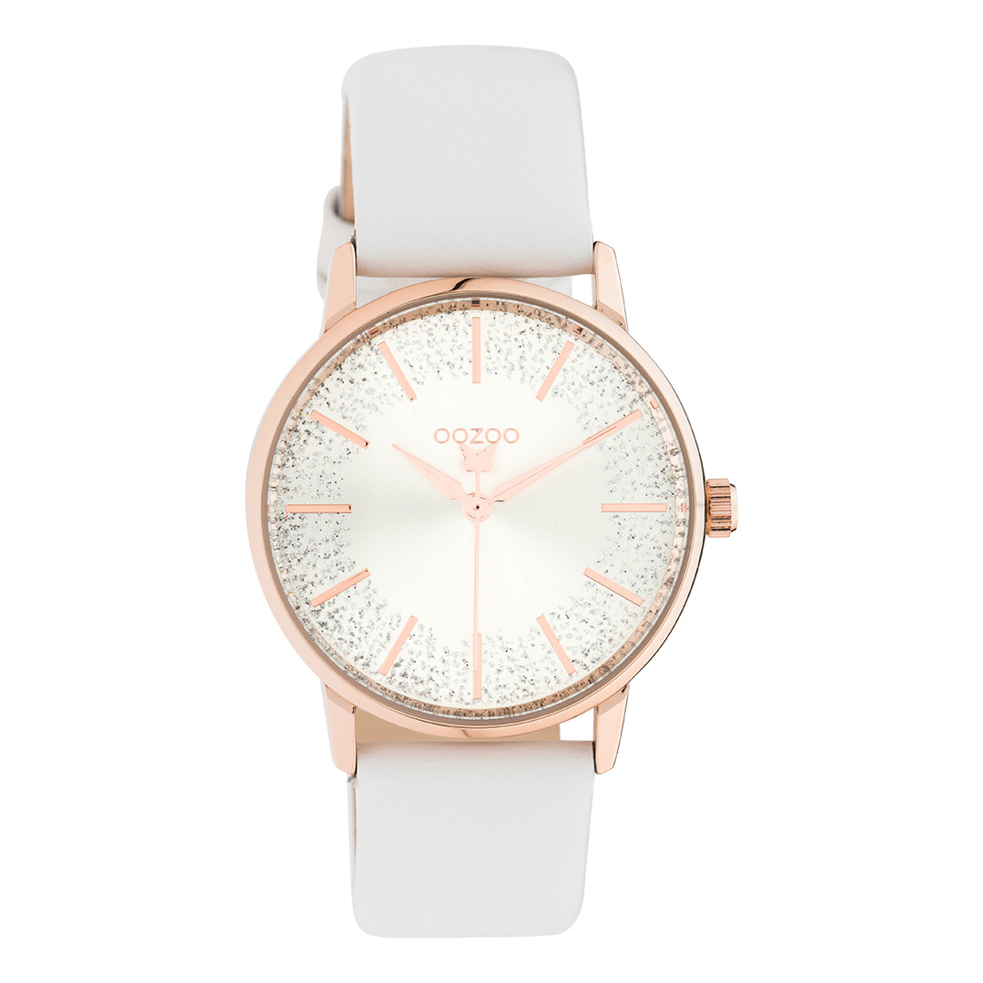 Κομψό γυναικείο ρολόι OOZOO με glitter στο καντράν και δερμάτινο λουράκι σε υπέροχους συνδυασμούς χρωμάτων