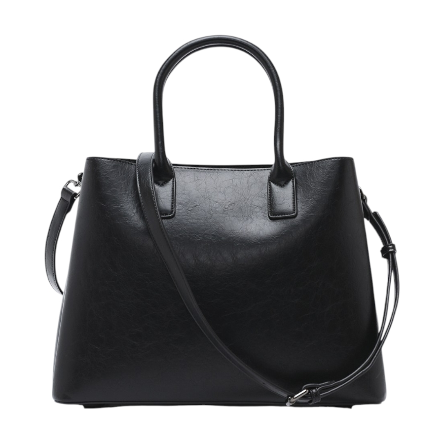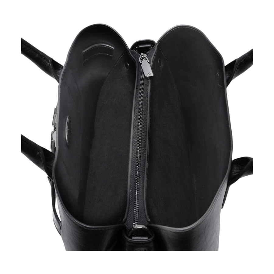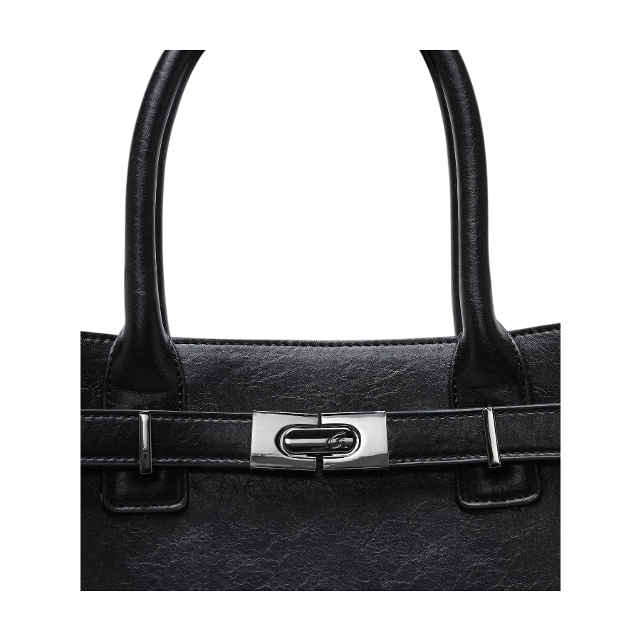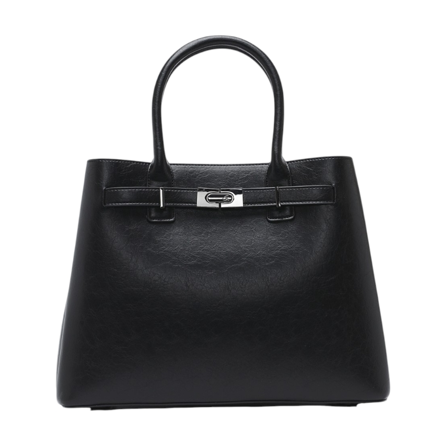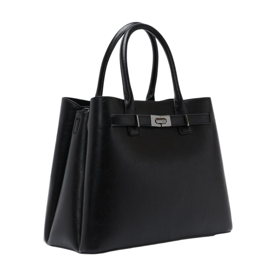 Γυναικεία τσάντα χειρός Briona, κατασκευασμένη από υψηλής ποιότητας τεχνόδερμα. Το εσωτερικό της διαμορφώνεται σε τρεις χώρους : με δύο πλαϊνες θέσεις για εύκολη πρόσβαση και ένα κεντρικό τμήμα που ασφαλίζει με φερμουάρ και περιλαμβάνει φόδρα, δύο ανοιχτές θήκες για οργάνωση και μία με φερμουάρ. Διαθέτει κράτημα με διπλά χερούλια αλλά και επιπλέον λουράκι για να φορεθεί και ως χιαστί. Στο εξωτερικό της διακοσμείται με ορθογώνιο μεταλλικό κούμπωμα 'a'. Μία τσάντα με διαχρονικό σχέδιο, ιδανική για πρωινές αλλά και βραδινές εμφανίσεις.