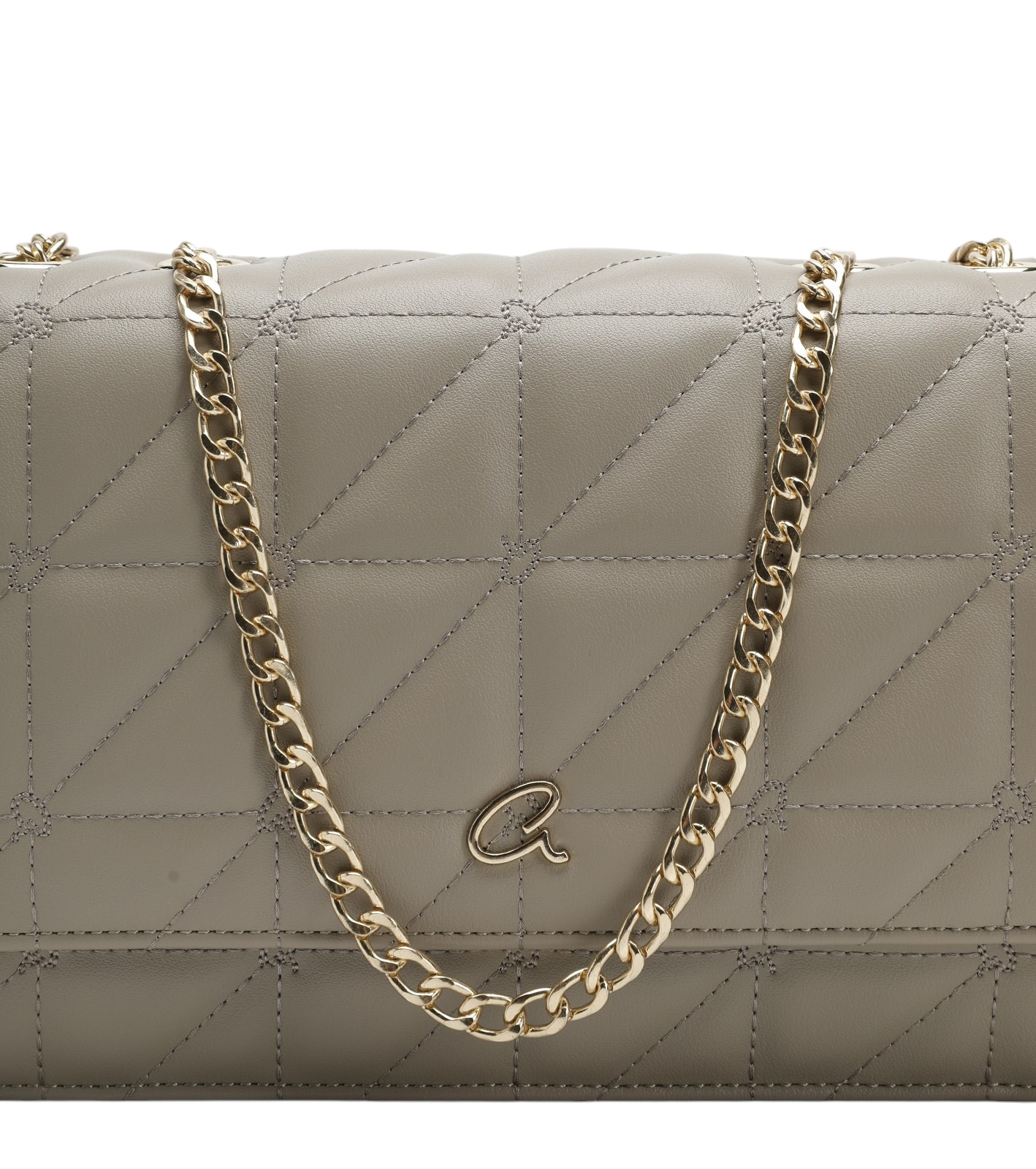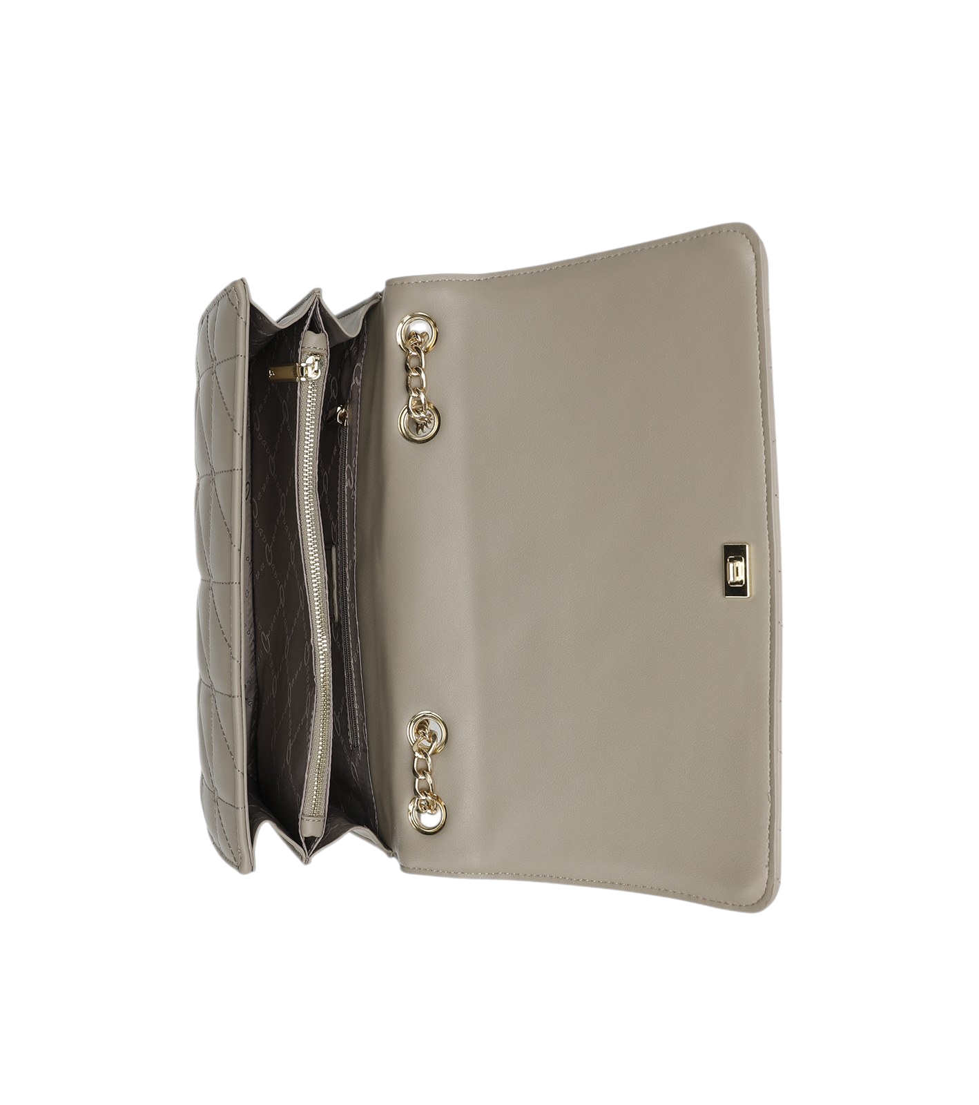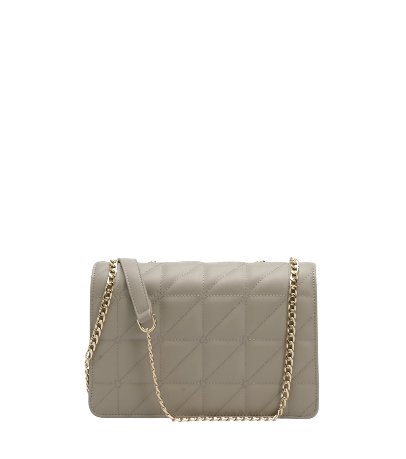 Γυναικεία τσάντα ώμου Garbina από τεχνόδερμα υψηλής ποιότητας με ραφές 'a' που της πρσφέρουν καπιτονέ υφή. Ασφαλίζει με μεταλλικό κούμπωμα και καπάκι και διαθέτει διπλή αλυσίδα η οποία μπορεί να προσαρμοστεί για να φορεθεί και ως χιαστί. Στο εσωτερικό είναι επενδυμένη με φόδρα και διαχωρίζεται σε δύο τμήματα που περιλαμβάνουν θήκη και τσέπη με φερμουάρ. Αποτελεί ιδανική επιλογή για κάθε εμφάνιση.