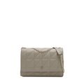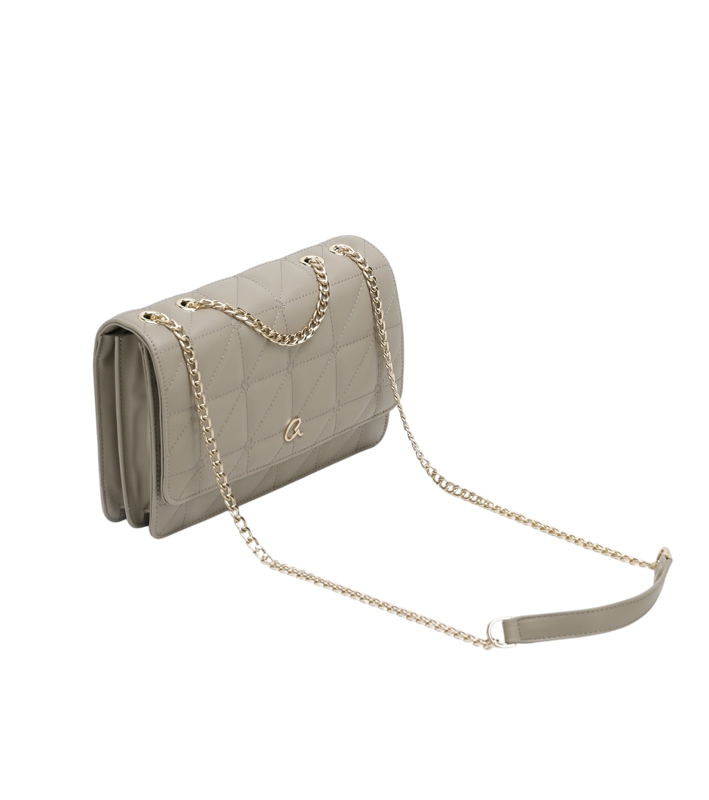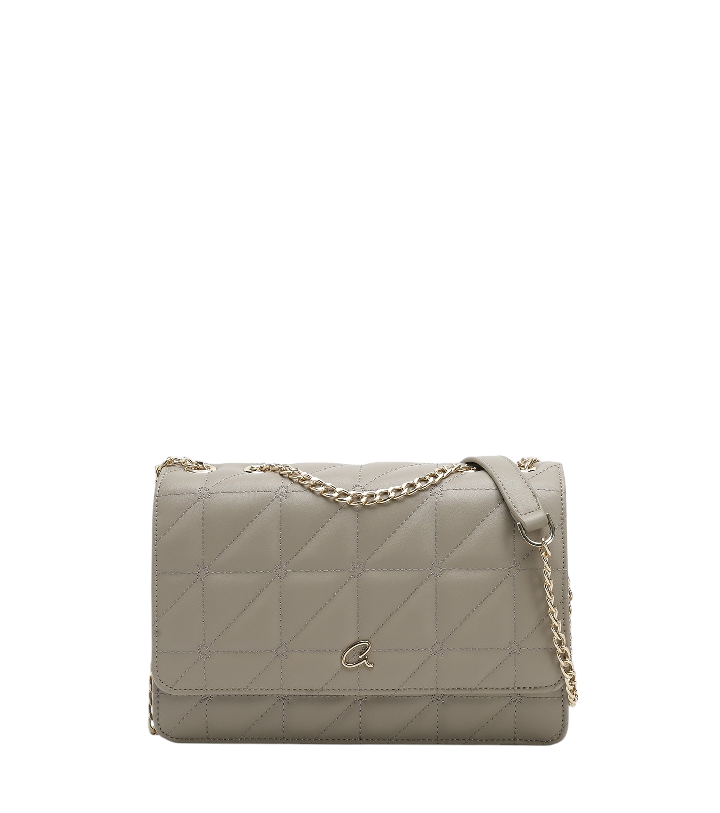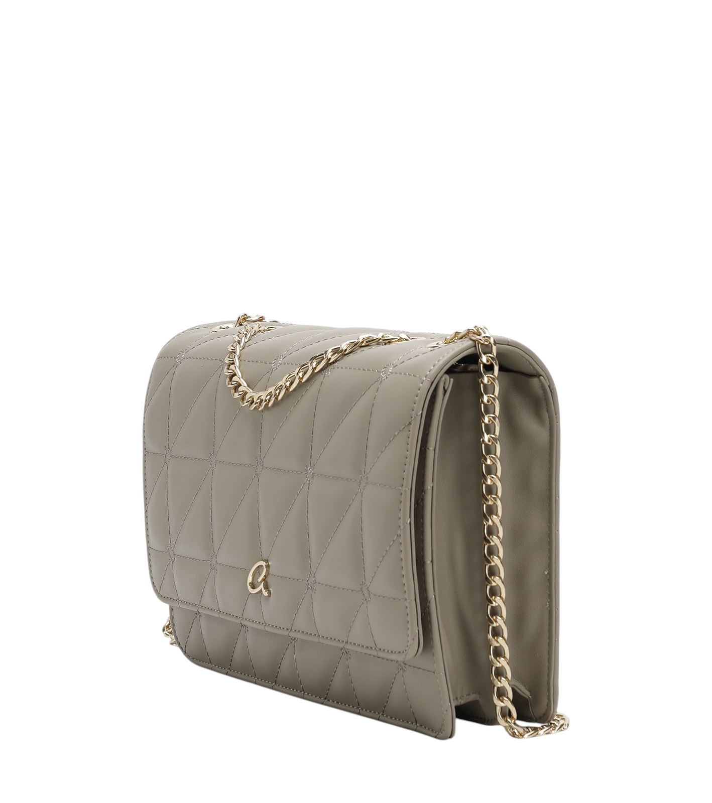 Γυναικεία τσάντα ώμου Garbina από τεχνόδερμα υψηλής ποιότητας με ραφές 'a' που της πρσφέρουν καπιτονέ υφή. Ασφαλίζει με μεταλλικό κούμπωμα και καπάκι και διαθέτει διπλή αλυσίδα η οποία μπορεί να προσαρμοστεί για να φορεθεί και ως χιαστί. Στο εσωτερικό είναι επενδυμένη με φόδρα και διαχωρίζεται σε δύο τμήματα που περιλαμβάνουν θήκη και τσέπη με φερμουάρ. Αποτελεί ιδανική επιλογή για κάθε εμφάνιση.