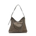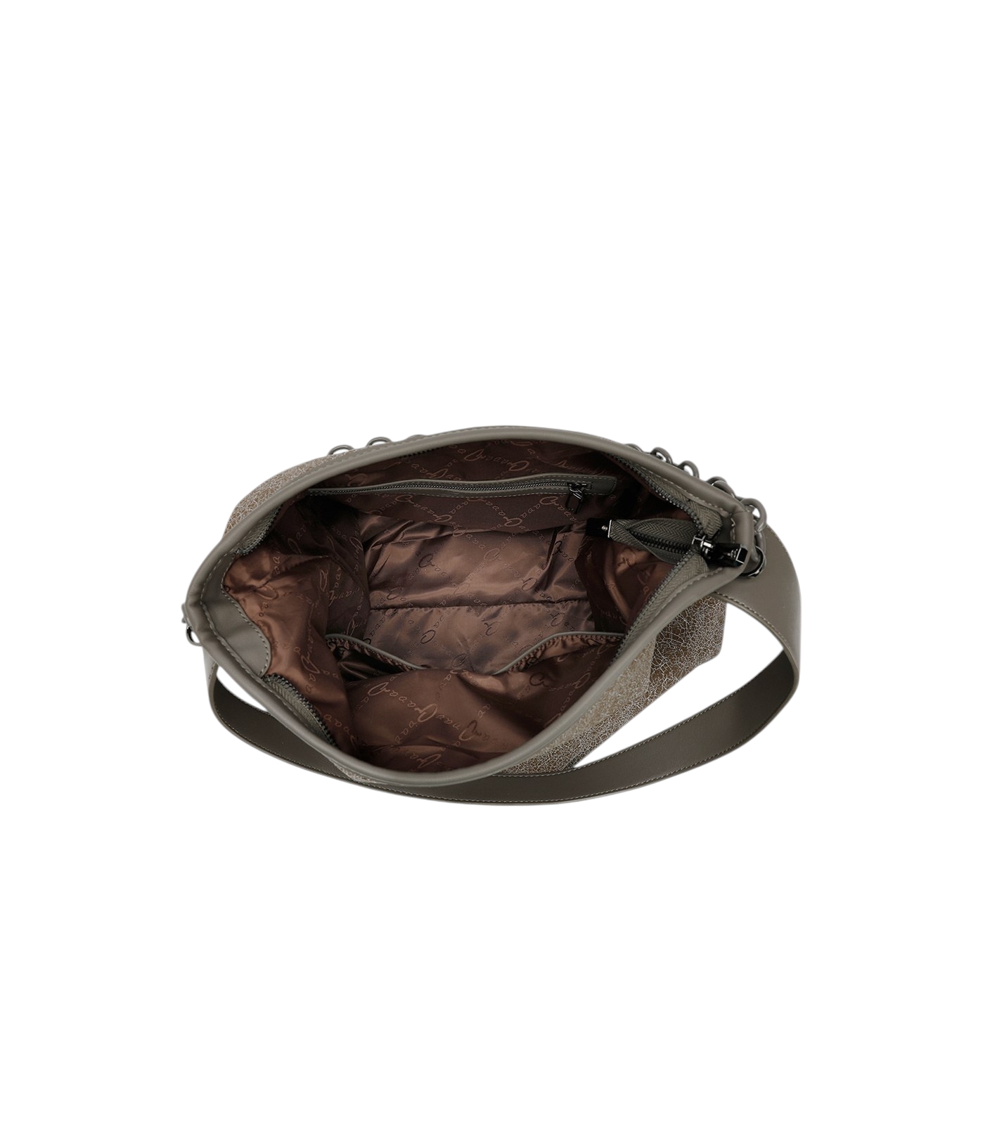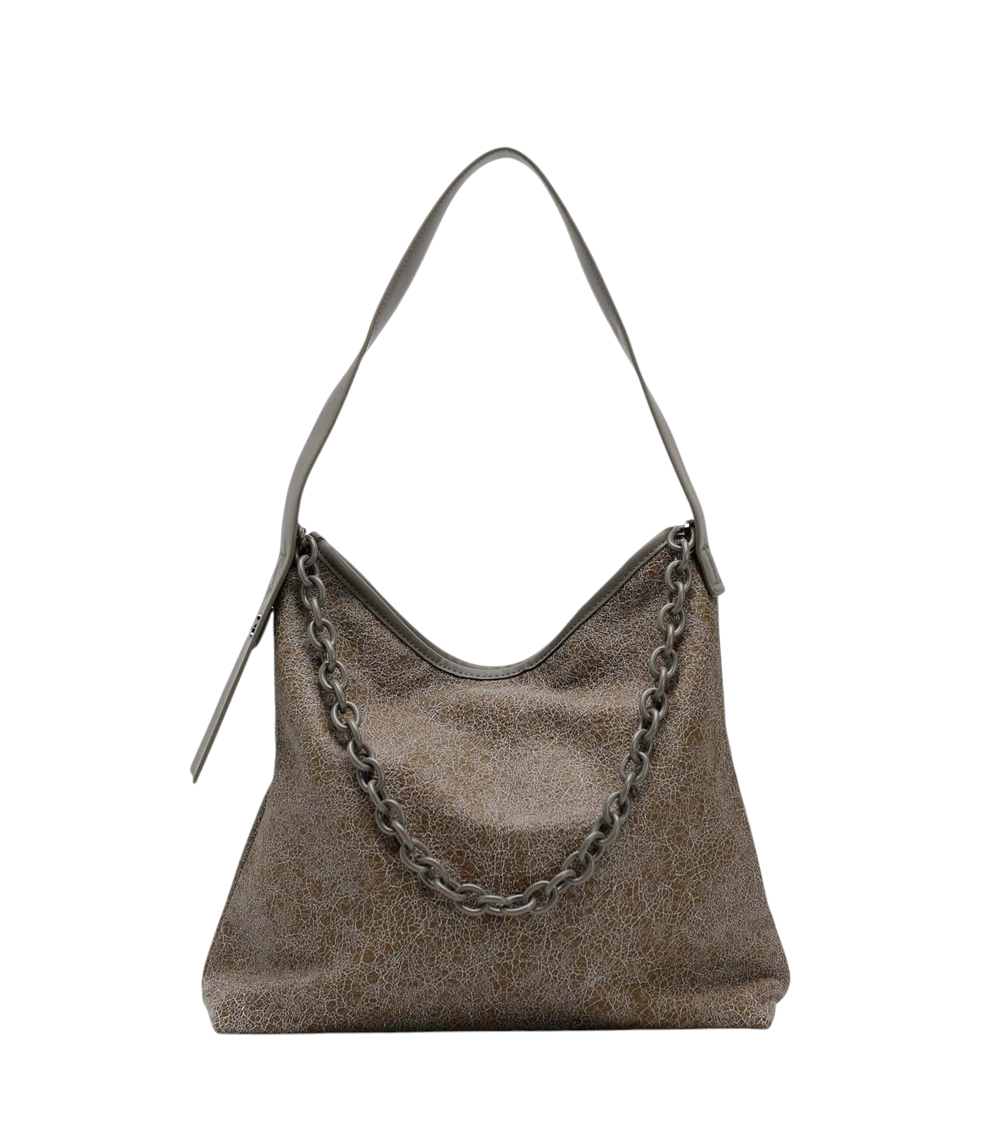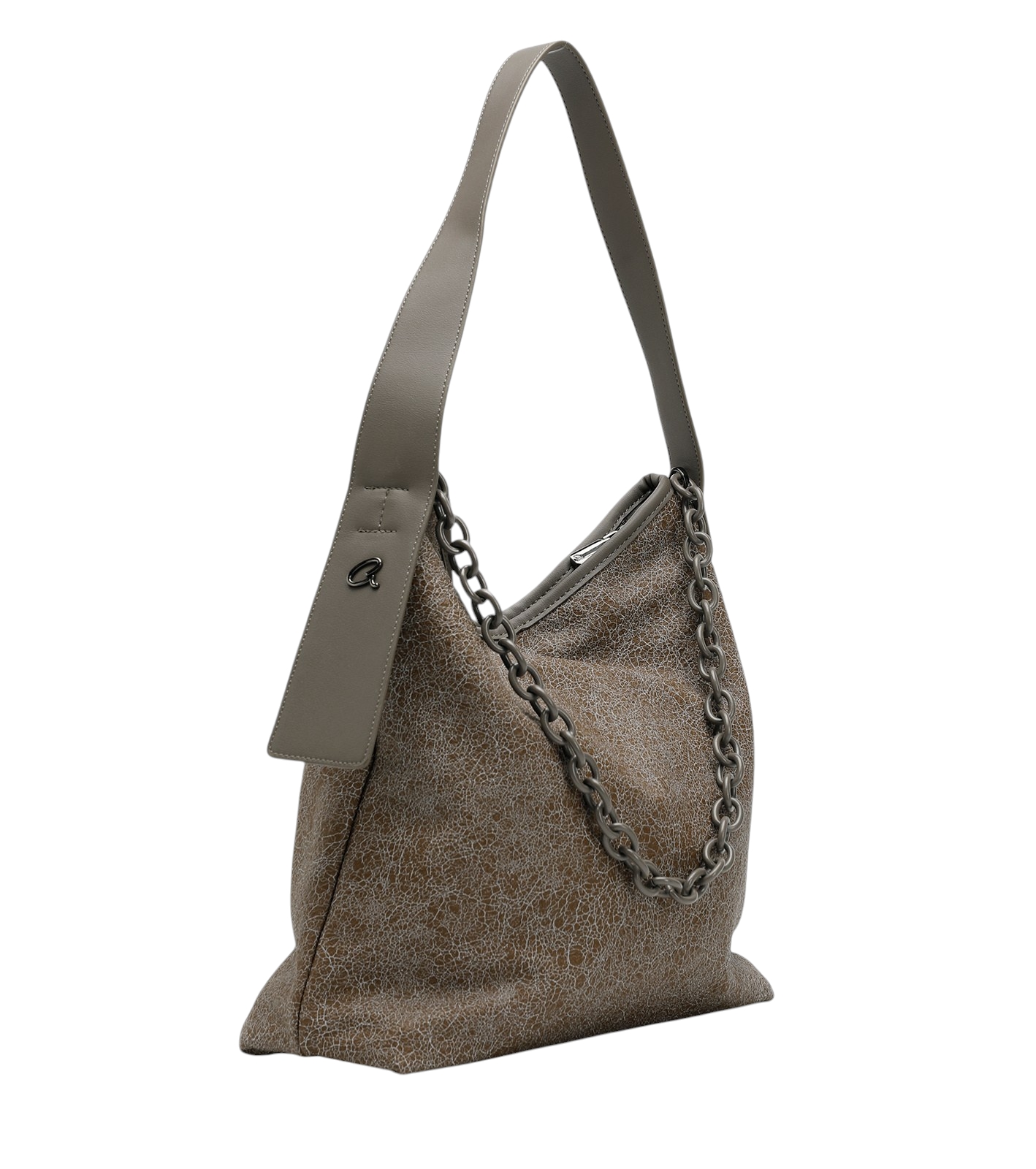 Γυναικεία τσάντα ώμου Jacey, κατασκευασμένη από τεχνόδερμα με ιδιαίτερη τεχνική cracquelle. Εσωτερικά είναι επενδυμένη με φόδρα, και διαθέτει δύο ανοιχτές θήκες και μία με φερμουάρ για οργάνωση. Εξωτερικά διακοσμείται με μεγάλη αλυσίδα και κλείνει με φερμουάρ. Μία πολύ ιδιαίτερη τσάντα για κάθε εμφάνιση.