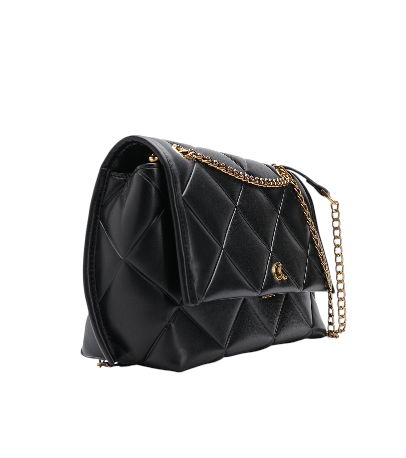 Γυναικεία τσάντα ώμου Lene, κατασκευασμένη από τεχνόδερμα με πρεσαριστή καπιτονέ τεχνική. Εσωτερικά είναι επενδυμένη με φόδρα και περιέχεi μία ανοιχτή θήκη και μία με φερμουάρ για οργάνωση μικρών αντικειμένων. Η αλυσίδα διαθέτει τεχνόδερμα στο σημείο του ώμου για άνεση στη μεταφορά και μπορεί να προσαρμοστεί ώστε να φορεθεί ως χιαστί. Ασφαλίζει με μεταλλικό κούμπωμα στο καπάκι. Μία όμορφη τσάντα με μοντέρνα όψη, κατάλληλη για πρωινά ή βραδινά σύνολα.