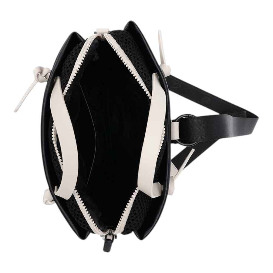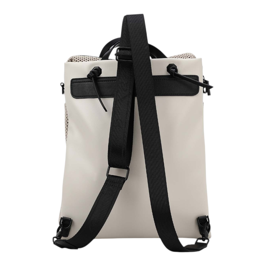 Γυναικείο σακίδιο πλάτης 3 way to wear από υψηλής ποιότητας τεχνόδερμα. Διαθέτει διπλά χερούλια για καλύτερο κράτημα και ρυθμιζόμενους ιμάντες πλάτης. Στα πλαϊνά είναι επενδυμένο με φάσμα από δίχτυ. Εσωτερικά διαθέτει φόδρα και περιέχει θήκες και τσέπη που κλείνει. Κλείσιμο με φερμουάρ.