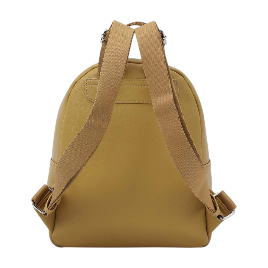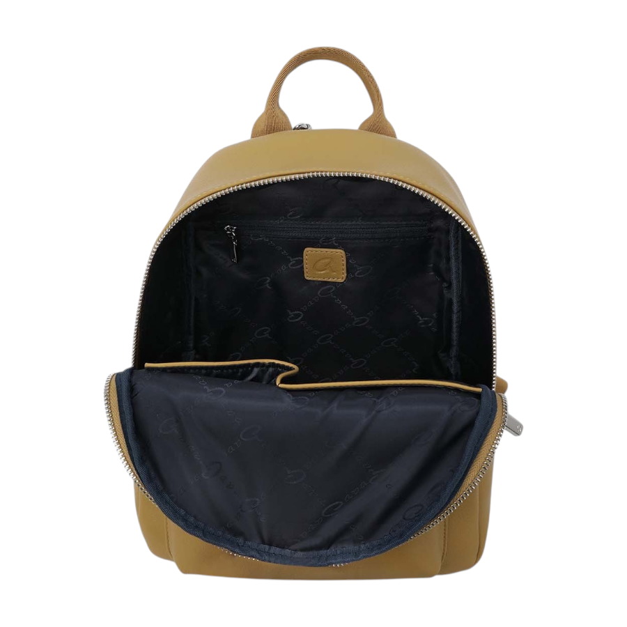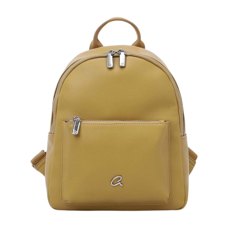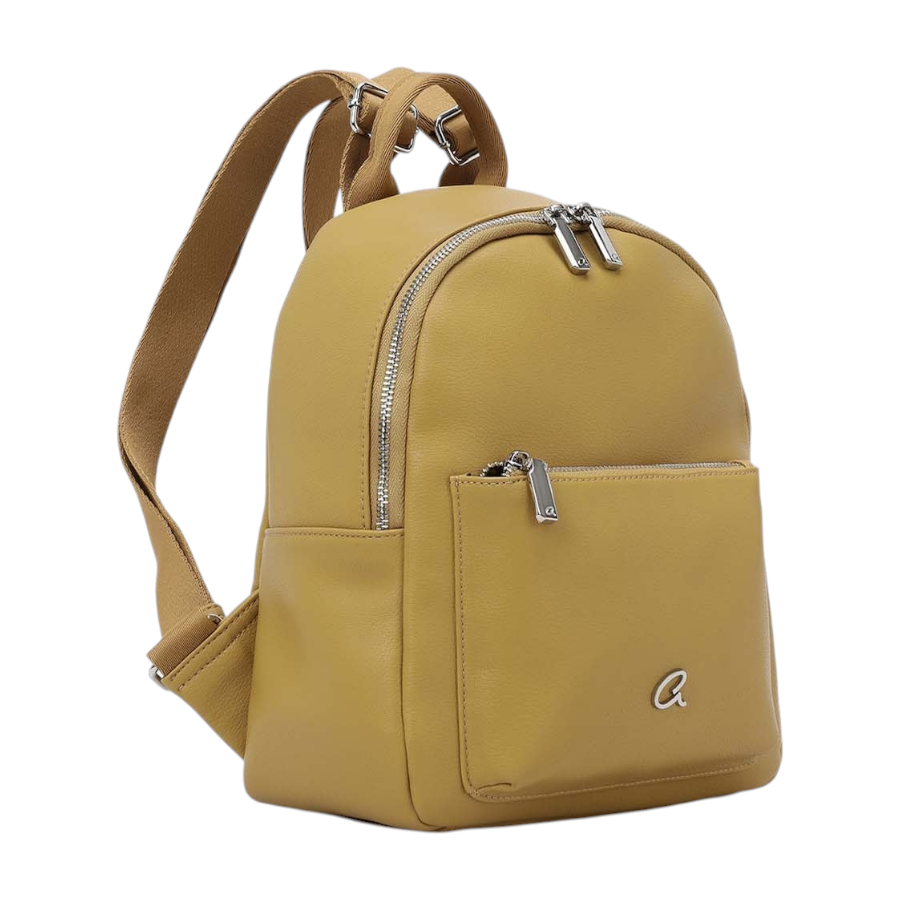 Γυναικείο σακίδιο πλάτης από συνθετικό δέρμα. Εσωτερικά περιέχει φόδρα, θήκες και τσέπη με φερμουάρ. Εξωτερικά διαθέτει μπροστινή τσέπη που κλείνει. Ασφαλίζεται με διπλό φερμουάρ.
