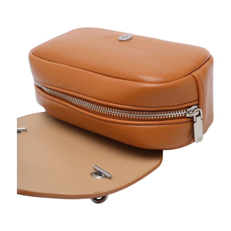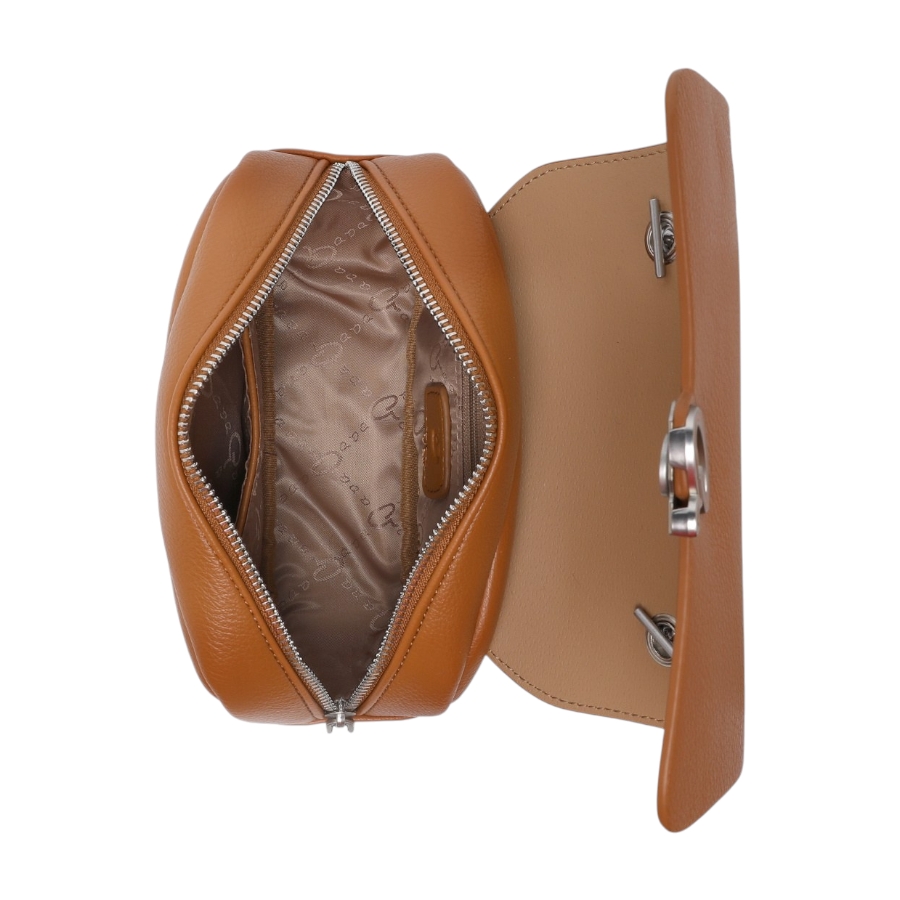 Γυναικείο τσαντάκι χιαστί Katrin, κατασκευασμένο από υψηλής ποιότητας τεχνόδερμα με αλυσίδα. Εσωτερικά είναι επενδυμένο με φόδρα στο εσωτερικό και περιλαμβάνει ένα ανοιχτό και ένα τσεπάκι που κλείνει με φερμουάρ. Ασφαλίζει με φερμουάρ και ιδιαίτερο μαγνητικό κούμπωμα. Το λουράκι είναι αποσπώμενο και μπορεί να ρυθμιστεί. Η εμφάνισή του ολοκληρώνεται με ματ μεταλλικές λεπτομέρειες. Ένα πολύ όμορφο τσαντάκι για μοντέρνες εμφανίσεις.