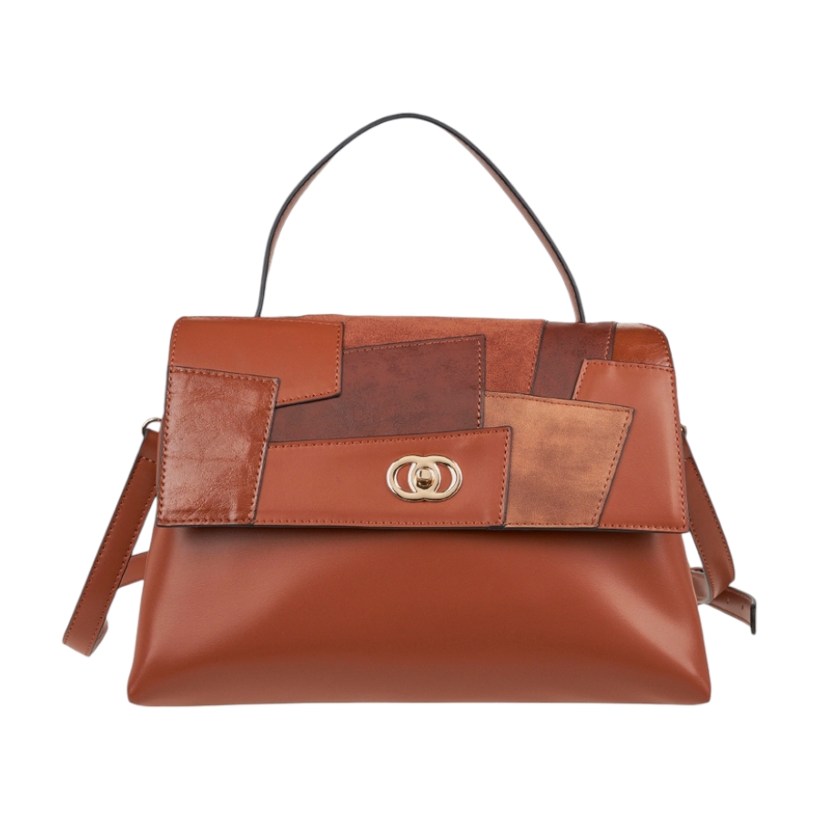 Αυτή η τσάντα χειρός Verde σε απόχρωση καμηλό συνδυάζει τη σύγχρονη αισθητική με πρακτικές λεπτομέρειες. Το καπάκι με το patchwork από διαφορετικές υφές δίνει μια δημιουργική και εκλεπτυσμένη εμφάνιση, ενώ η δομημένη σιλουέτα της τσάντας την καθιστά ιδανική για καθημερινή χρήση αλλά και πιο κομψές εξόδους.