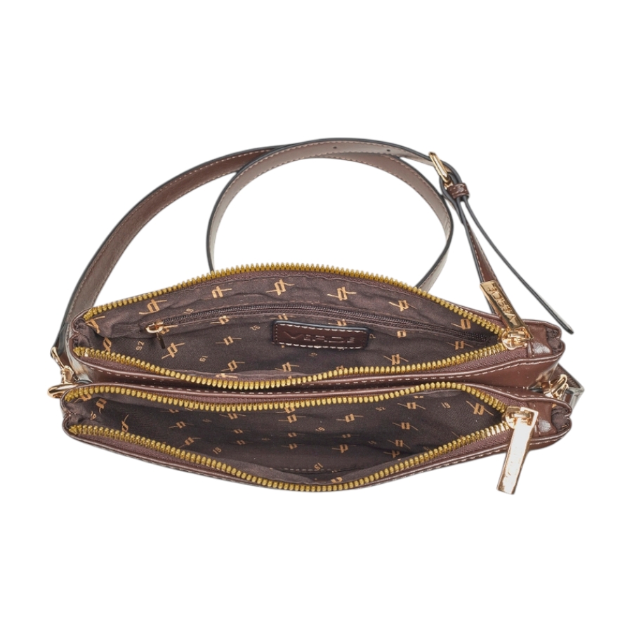 Γυναικεία Τσάντα Χιαστί Verde Μια κομψή και ευέλικτη επιλογή που αποπνέει διακριτική πολυτέλεια. Η χιαστί τσάντα Verde με λείο φινίρισμα και χρυσό λογότυπο στο μπροστινό μέρος προσδίδει minimal αισθητική και πρακτικότητα στην καθημερινότητά σας. Διαθέτει δύο ξεχωριστές θήκες με φερμουάρ για ιδανική οργάνωση των απαραίτητων αντικειμένων και ρυθμιζόμενο λουράκι ώμου για άνετη εφαρμογή.