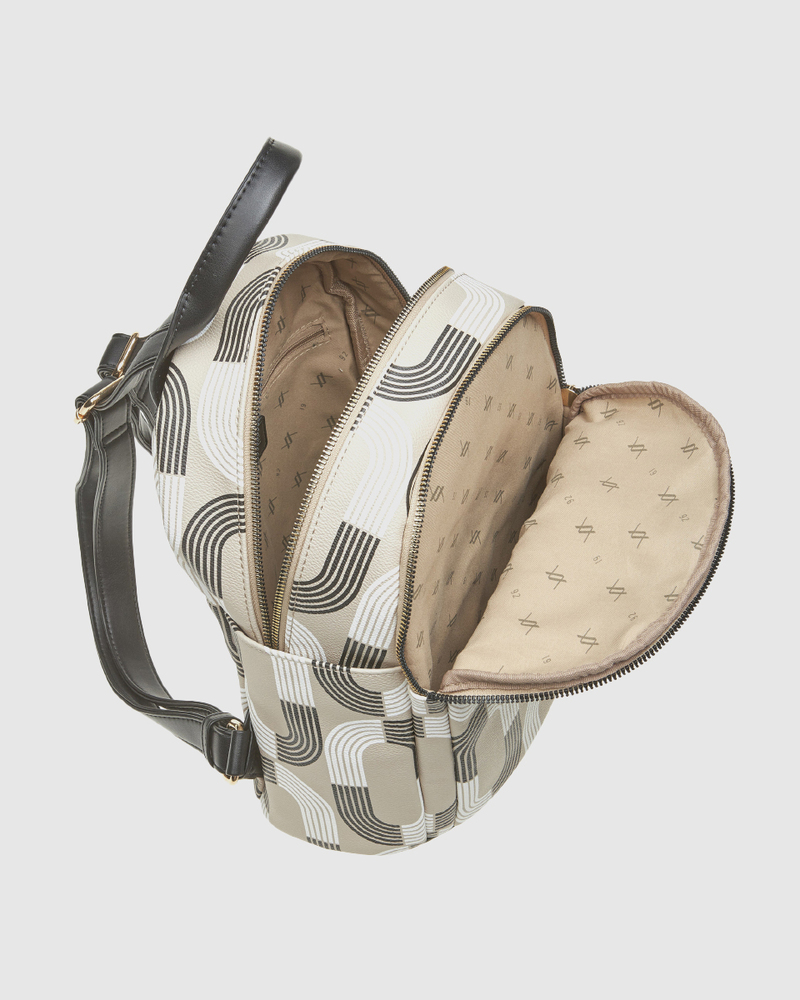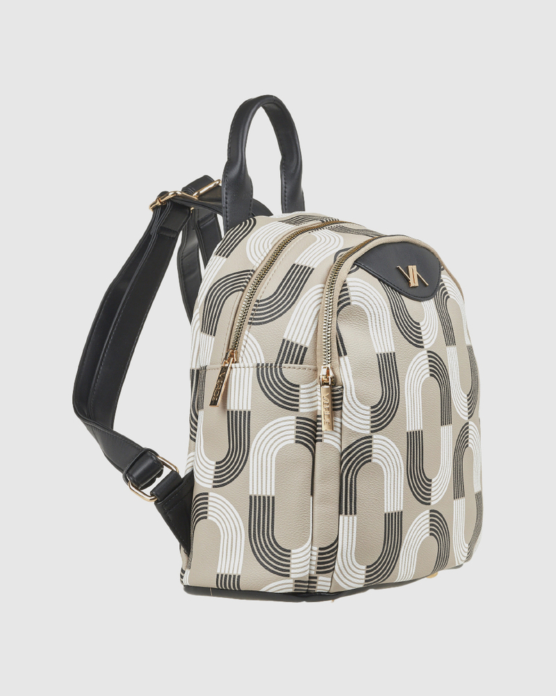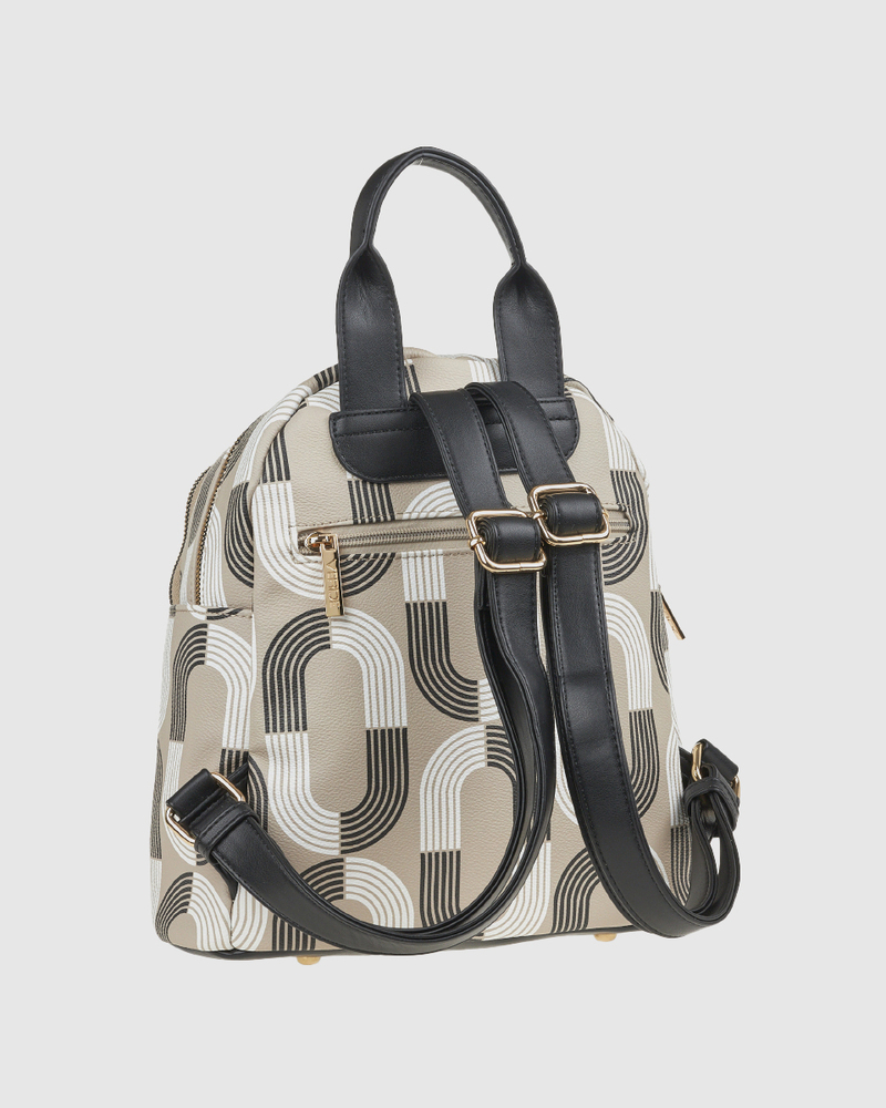 Κομψό σακίδιο πλάτης με μοντέρνο σχεδιασμό καιγεωμετρικά μοτίβα, ιδανικό για καθημερινή χρήση αλλά και για πιο προσεγμένεςεμφανίσεις. Διαθέτει πρακτικούς αποθηκευτικούς χώρους με φερμουάρ, εσωτερικέςθήκες οργάνωσης και άνετους ιμάντες μεταφοράς. Το εξωτερικό μέρος είναικατασκευασμένο από υψηλής ποιότητας συνθετικό δέρμα, ενώ το εσωτερικό διαθέτειυφασμάτινη επένδυση που προστατεύει τα προσωπικά αντικείμενα. Συνοδεύεται απόπροστατευτική θήκη.