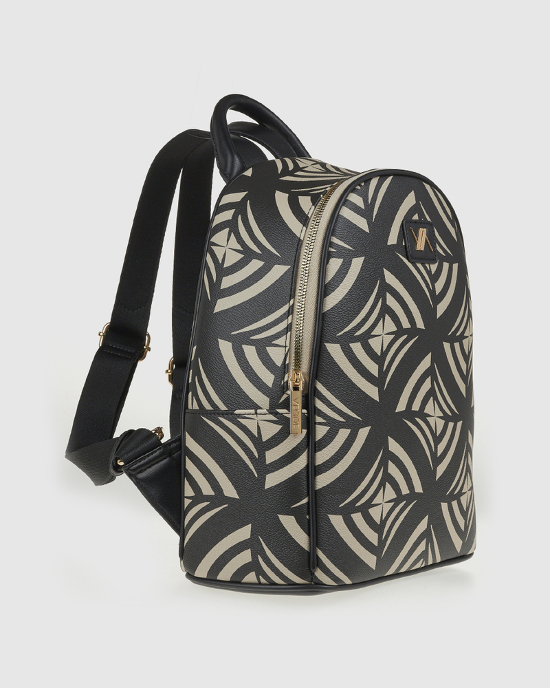 Κομψό σακίδιο πλάτης κατασκευασμένο από υψηλήςποιότητας συνθετικό δέρμα με υφασμάτινη εσωτερική επένδυση, διαθέτει μοντέρνοσχεδιασμό με γεωμετρικά μοτίβα και είναι ιδανικό για καθημερινή χρήση αλλά καιγια πιο προσεγμένες εμφανίσεις. Περιλαμβάνει πρακτικούς αποθηκευτικούς χώρουςμε φερμουάρ, εσωτερικές θήκες οργάνωσης και ρυθμιζόμενους ιμάντες μεταφοράς πουμπορούν να προσαρμοστούν για μεγαλύτερη άνεση. Συνοδεύεται από προστατευτική θήκη.