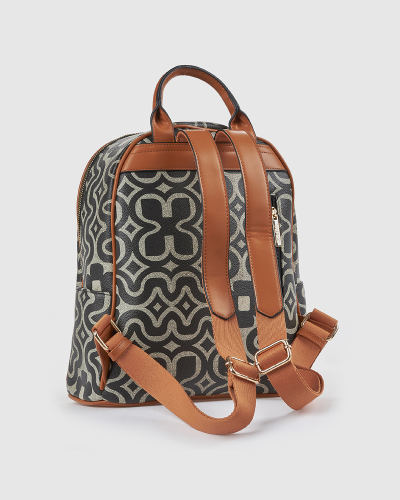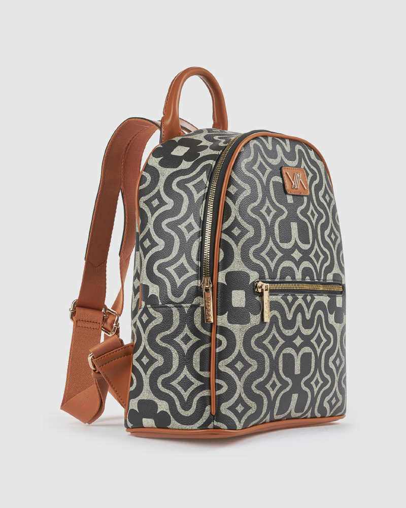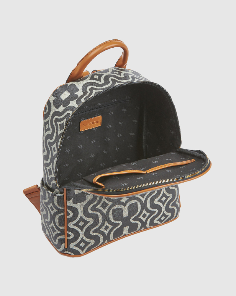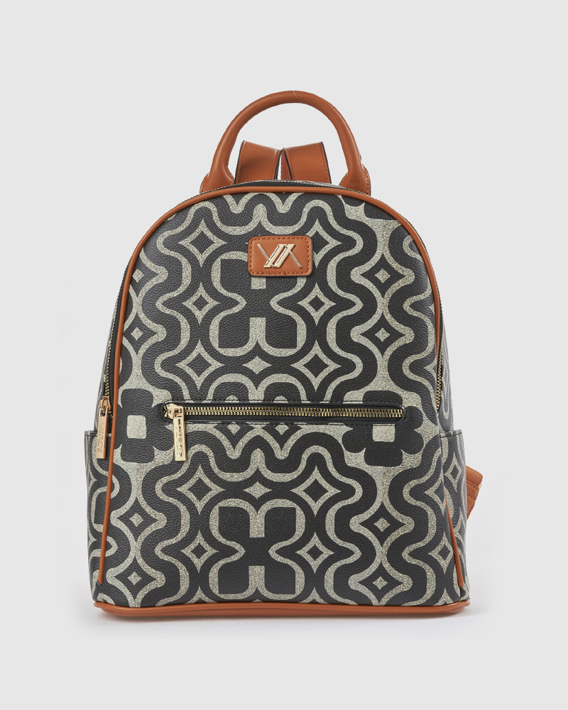 Κομψό σακίδιο πλάτης με έντονο γεωμετρικόμοτίβο που προσδίδει μοντέρνο χαρακτήρα και ξεχωριστή αισθητική. Κατασκευασμένοαπό συνθετικό δέρμα με ανθεκτική υφή, είναι κατάλληλο για καθημερινή χρήση.Διαθέτει επάνω χερούλι και ρυθμιζόμενους ιμάντες πλάτης για άνετη μεταφορά, ενώκλείνει με φερμουάρ για μεγαλύτερη ασφάλεια. Το εσωτερικό του είναι ευρύχωροκαι οργανωμένο με εσωτερική τσέπη με φερμουάρ για καλύτερη τακτοποίηση τωνπροσωπικών αντικειμένων. Συνοδεύεται από προστατευτική θήκη.