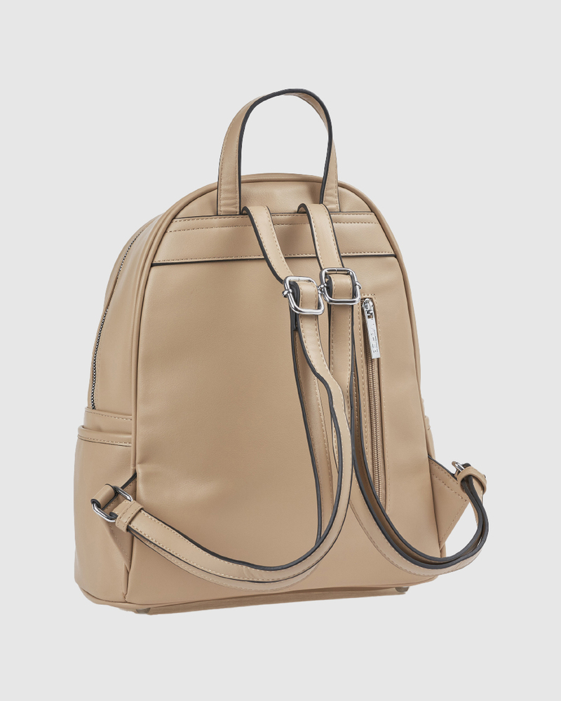 Γυναικείο σακίδιο πλάτης μοντέρνου σχεδιασμού,κατασκευασμένο από συνθετικό δέρμα υψηλής ποιότητας που προσφέρει αντοχή καικομψή εμφάνιση για καθημερινή χρήση. Διαθέτει ευρύχωρο κύριο διαμέρισμα μεεσωτερική θήκη και πρακτικές εσωτερικές τσέπες για καλύτερη οργάνωση, καθώς καιπρόσθετη εξωτερική τσέπη με φερμουάρ για εύκολη πρόσβαση στα απαραίτητα. Ταρυθμιζόμενα λουριά πλάτης εξασφαλίζουν άνετη εφαρμογή, ενώ το διαχρονικό του design το καθιστά ιδανική επιλογή τόσο για πρωινές όσο και για απογευματινέςεμφανίσεις, συνδυάζοντας λειτουργικότητα και στυλ. Συνοδεύεται απόπροστατευτική θήκη.